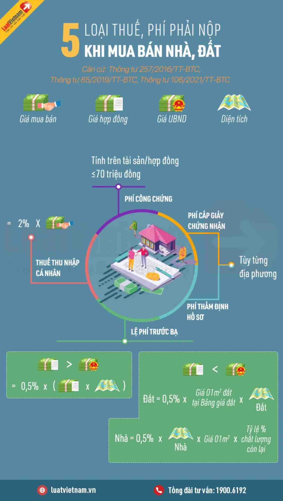 Infographic: 5 loại thuế, phí phải nộp khi mua bán nhà đất