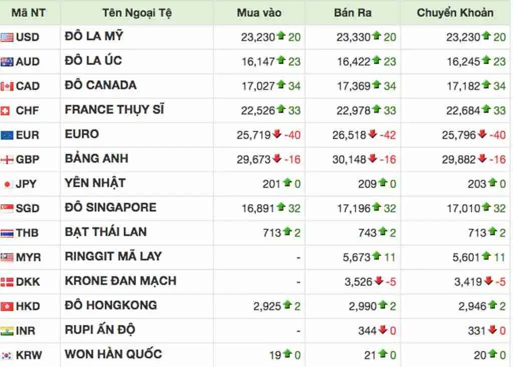 Bảng tỷ giá ngoại tệ khách hàng cá nhân cập nhật tỷ giá liên ngân hàng, tỷ giá ngoại tệ hôm nay: Đô la Mỹ USD, Euro, tiền Thái lan, Nhân dân tệ, Úc, Won ...
